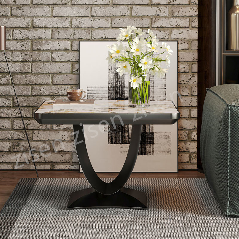 2.セラミックマーブル挿入:サイドテーブルにはセラミックマーブル挿入が展示されており,それは,大理石の自然な美しさと陶器の耐久性と汎用性を組み合わせています.陶器製の大理石の挿入物には 複雑な静脈パターンがありますテーブルに視覚的な興味と優雅さを加える滑らかな表面です陶器 と 大理石 の 融合 で,耐久 し て 維持 に 費やす 材料 が 生み出さ れ,自然 の 大理石 の 華麗 な 外観 と 質感 を 維持 し ます.