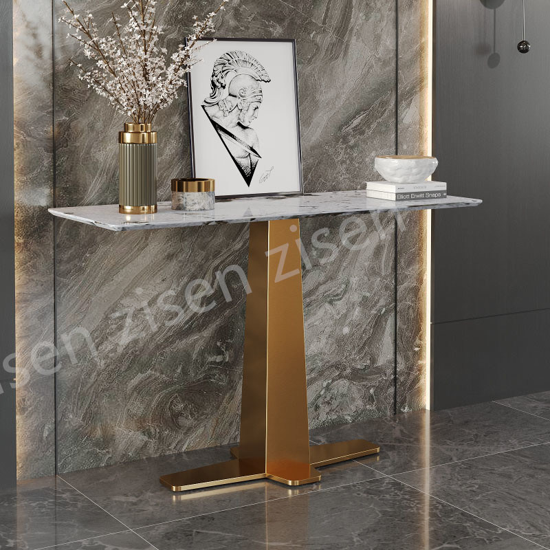 1.セラミック・マーブル・テーブルトップ: コンソールテーブルには高品質のセラミック・マーブル・テーブルトップがあり,贅沢と洗練を添える.セラミック・マーブルは滑らかで磨かれた表面を有する.それぞれの作品をユニークにする 自然な静脈と色の変化を展示します陶器の耐久性により テーブルの表面は 日常使用に耐える一方で 美しさも保たれます